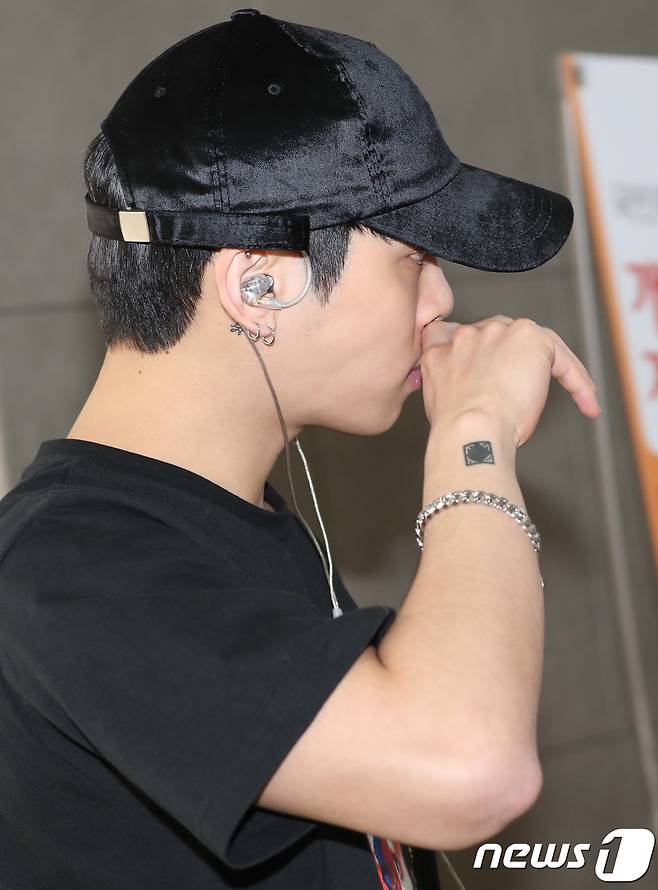 (김포공항=뉴스1) 권현진 기자 = 샤이니 종현이 제주도 SM 워크숍을 마친뒤 21일 김포공항으로 도착해 차로 이동하고 있다.