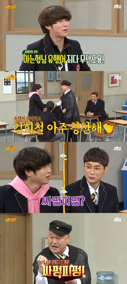 김희철이 다른 프로그램 팀과 회식한 민경훈에게 “너 싸펑피펑?”이라고 하면서 ‘싸펑피펑’이 시작된 것. 강호동이 자신의 유행어를 리메이크한 김희철과 악수하며 “칭찬해”라며 고마운 마음을 표현했다.