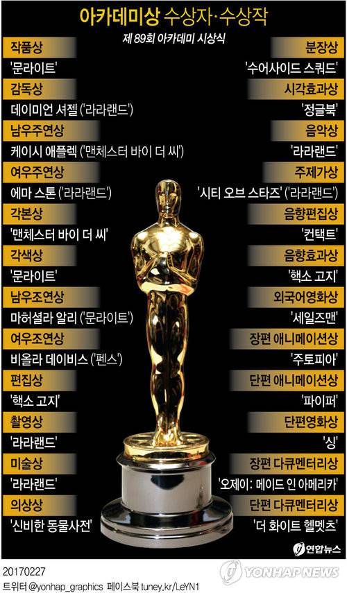 여우조연상은 '펜스'에 출연한 흑인 여배우 비올라 데이비스가 받았다.