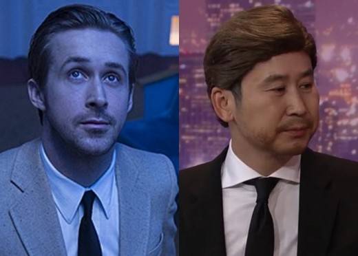재즈 피아니스트로 여주인공을 나름대로 지고지순하게 사랑하던 순정마초 세바스찬을 연기한 라이언 고슬링과 닮은꼴은 바로 개그맨 신동엽. 라이언 고슬링은 이미 오래 전부터 국내 팬들에게 신동엽을 떠올리게 하는 배우로 알려졌다. 신동엽과 라이언 고슬링 모두 '모여라 눈코입'이라는 별명이 어울리는 스타이기 때문.