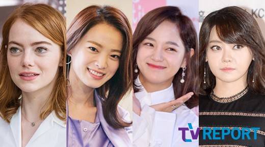 엠마 스톤은 작은 얼굴에 넓은 이마, 커다란 눈과 시원스럽게 큰 입이 매력이다. 김세정 서유리 천우희는 모두 큰 눈과 넓은 이마가 눈에 띄는 미녀들.