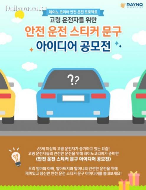 이번 ‘고령 운전자를 위한 안전 운전 스티커 문구 공모전’은 레이노코리아 공식 블로그를 통해 진행 중이며, 오는 6월 12일까지 응모를 받으며, 당첨자는 17일 블로그를 통해 발표될 예정이다.