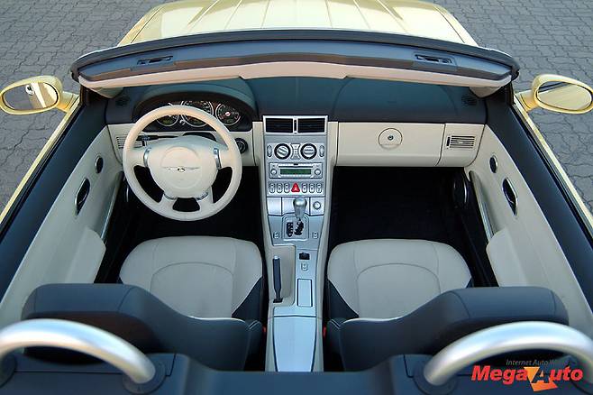 특히 운전석에 앉아 이것저것 조작하고 만지다 보면 SLK와 같은 부분이 여러 군데 나타난다. 도어 손잡이와 스티어링 휠, 계기판 안의 바늘과 스위치 등은 크라이슬러의 것임이 분명하다. 하지만 인스트루먼트 패널과 센터 페시아의 레이아웃, 방향지시등 레버, 헤드 레스트 스위치등은 SLK의 감각 그대로다. 뿐만 아니라 사이드 브레이크 레버, 시프트 게이트, 브레이크 페달, 엑셀러레이터 페달, 글로브박스, 비상등 스위치 등도 SLK의 것과 같다.