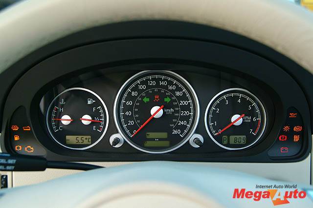 계기판 안의 디자인은 SLK와 같은 원통형은 아니지만 가운데 큼지막한 스피도미터와 오른쪽에 타코미터 왼쪽에 수온계 및 연료계의 배열은 같다. 속도계의 눈금도 260km/h까지로 같은 구성. 다만 센터 페시아의 각종 버튼들이 메르세데스류에서는 볼 수 없는 것들이어서 차별화가 되는 정도라고 할 수 있을 것 같다. 그런 선입관으로 인한 것인지 착좌감도 통상적인 미국차보다는 훨씬 하드한 감각이다. 물론 시트 포지션도 상대적으로 낮게 설정되어 있다.