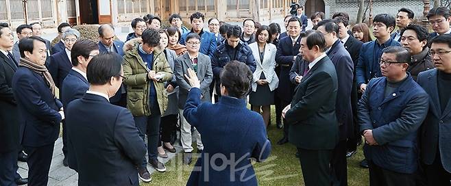지난 1일 신년 기자간담회에서 탄핵소추안 가결로 직무정지 상태인 박근혜 대통령이 청와대 기자들을 동원해 탄핵사유를 전면 부인한 건 위헌이라는 지적이다. 대통령의 위법 행위에 청와대 기자들이 들러리를 섰다는 점에서 시선이 곱지 않은 것이다.