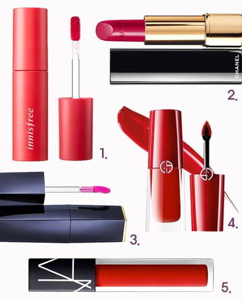 5. 나스 ‘벨벳 립 글라이드’는 마르거나 끈적임 없이 풍성한 컬러감을 선사한다. 촉촉한 세미 매트 텍스처로 립 메이크업을 완성시킬 수 있다. (사진출처: bnt뉴스 DB, 이니스프리, 샤넬, 에스티 로더, 조르지오 아르마니, 나스)