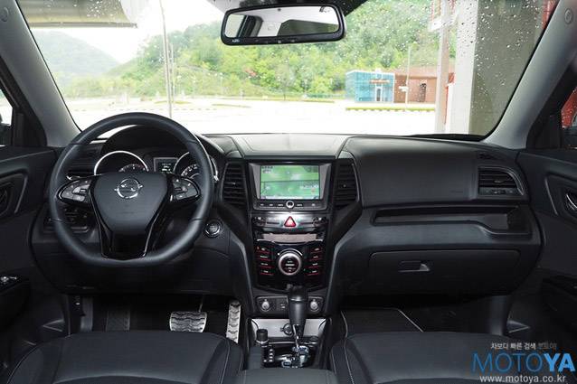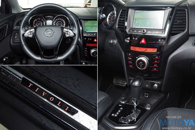 실내는 전반적으로 티볼리와 크게 다르지 않은 모습이다. 특유의 대시보드 주변을 비롯하여, D-컷 스타일 스티어링 휠, 색상을 변경할 수 있는 계기판, 다양한 형태의 기발하고 유용한 수납공간 등은 여전히 개성적이면서도 매력적인 구성이다. 적어도 운전석과 조수석 둘레에서는 티볼리와 티볼리 에어와의 차이점을 잡아 내기 어렵다. 하지만 소재와 색상의 선택에 있어서 티볼리와는 사뭇 다른, 차분하고 블랙 톤을 주로 사용하여, 티볼리와의 차별화를 꾀하고 있다.