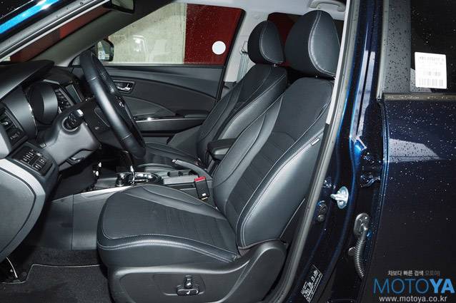 앞좌석은 세미 버킷 형태로 만들어져 있다. 착석감은 적당히 부드러운 편이고 사이드 볼스터가 착좌부에 비해 단단한 재질로 이루어져 있어, 몸을 지지해 주는 느낌을 준다. 운전석 한정으로 6방향의 전동 조절 기능 및 통풍 기능이 마련되어 있으며, 급격한 차체의 움직임 아래서도 운전자의 몸을 그럭저럭 잘 잡아 주는 편이다. 하지만 티볼리와 같이, 운전석조차 허리 받침이 적용되지 않은 점은 실로 아쉬운 부분이다.