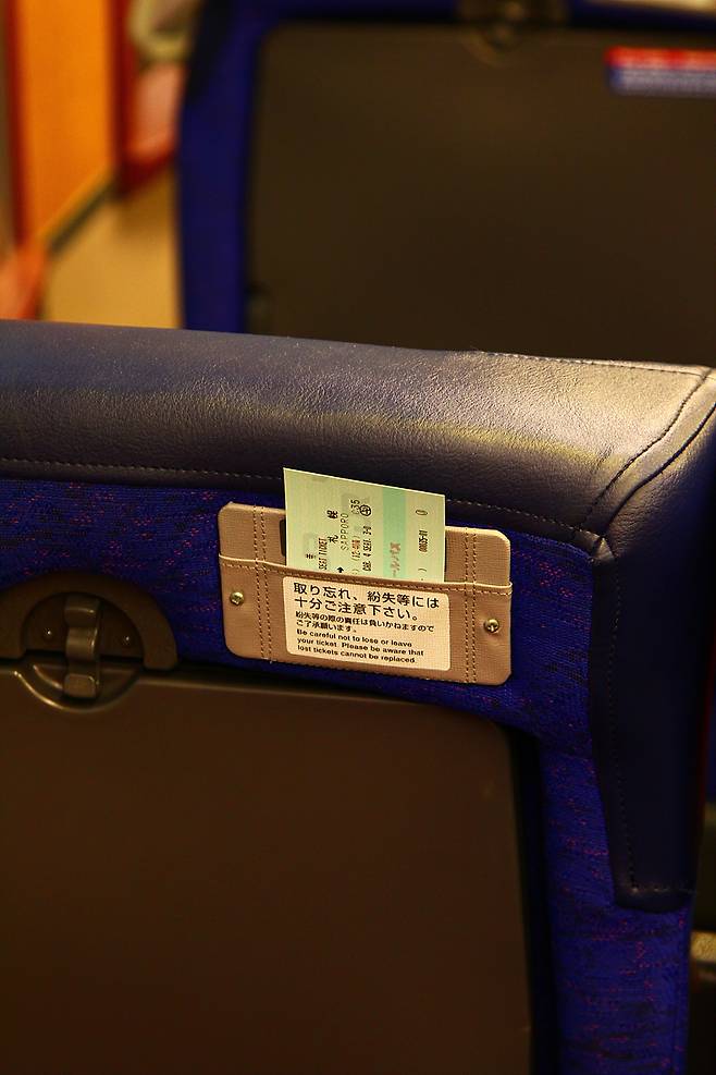 지정석을 받아서 지하 2층 플랫폼에서 탑승을 시작합니다. 쾌속에어포트의 지정석인 U-Seat 는 랩핑도 일반 객차와 다릅니다. 일반객차는 선이 연녹색인 것에 비해 U-Seat의 외관은 진청색으로 되어 있어 한 눈에 찾기 편합니다. 탑승하면 우선 지정석권을 좌석 앞 티켓 주머니에 넣습니다. 검표하는 승무원이 뽑아서 도장을 찍어 검표하고 다시 그 자리에 꽂아 놓습니다.