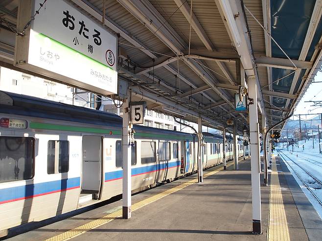 | ▲ JR오타루역 쾌속에어포트가 출발 준비중인 오타루역플랫폼 |