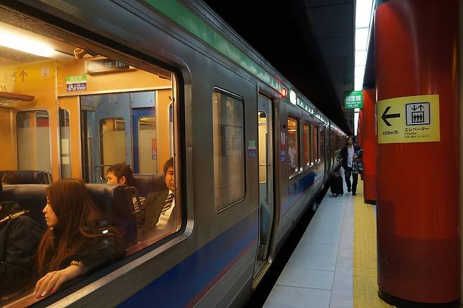 | ▲ JR신치토세공항역 JR신치토세공항역에서 출발 준비중인 쾌속에어포트 U-Seat석 객차 |