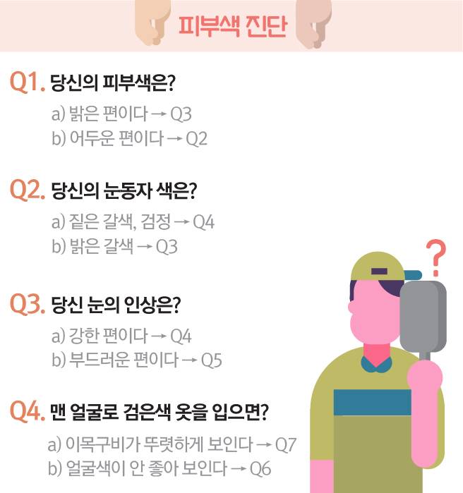 그럼 각각에 따라 어떤 색이 어울리는지 알아볼까요?