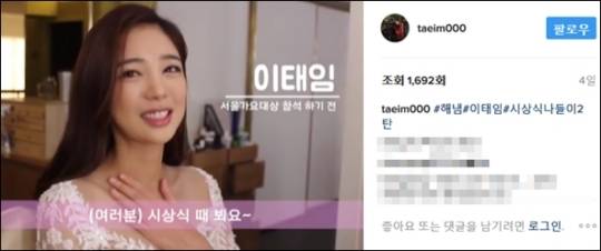영상 속 이태임이 지난 19일 열린 서울가요대상 시상식에 참석한 모습이 담겨 있다.