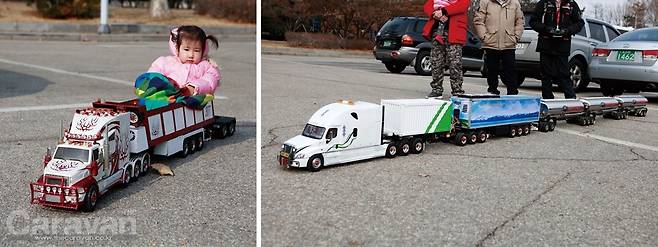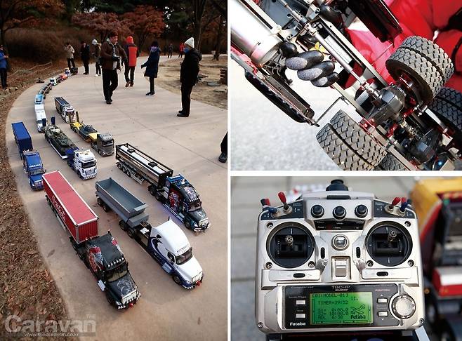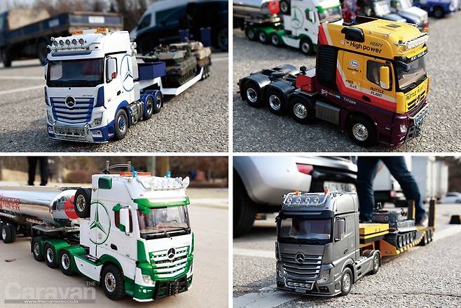 스케일 RC(트럭, 트레일러)는 차량의 실제 크기를 정확한 축적비율로 줄이고 구동이 가능한 RC의 형태로 제작하는 것을 말한다. 스케일 RC를 조정하기 위해서는 우선 트랙터, 트레일러, 조정기 등이 필요하다. 취재를 통해 만난 스케일 트럭과 트레일러의 실물은 경적, 엔진 사운드, 기어 변속, 라이트까지 하나하나 정성으로 완성되어 상상 그 이상이었다.