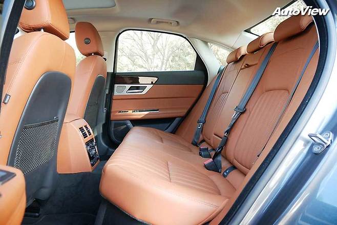2세대 XF는 뒷좌석 공간도 넓어졌다. 엔트리 모델 XE는 뒷좌석이 너무 좁았다. 좁기도 좁을뿐더러 센터터널까지 높아 더 좁아 보였다. 하지만 XF는 비즈니스 세단에 걸맞은 여유로운 공간을 갖게 됐다. 과거 대비 레그룸(다리 공간)은 15mm, 무릎 공간 24mm, 헤드룸(머리 공간)도 27mm 가량 높아졌다. 문제는 센터터널이 너무 높다는 것. 성인 남성 손바닥 높이보다 높게 솟았다. 이는 실내를 좁아 보이게 한다.