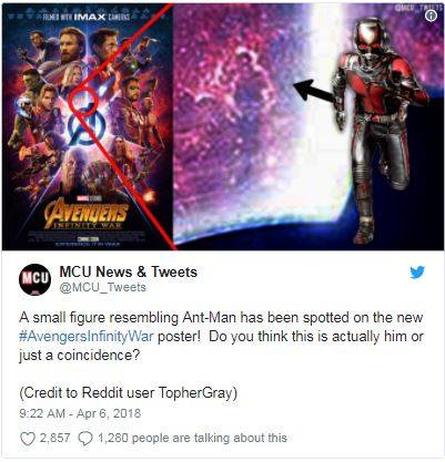 MCU 뉴스 & 트윗은 6일(현지시간) IMAX 포스터 속에 작은 모습으로 등장한 앤트맨을 확대한 후 “실제 앤트맨으로 생각하는가, 단지 우연인가”라고 했다.