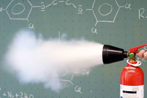 소화기는 재료에 따라 분말과 이산화탄소, 할론 등을 활용한 다양한 제품이 있습니다. 일반적으로 가정에는 분말 소화기가 비치되어 있습니다. 소화기의 원리는 산소를 차단하고, 온도를 내림으로써 불을 끄는 것입니다. 분말 소화기 내부에는 제1인산암모늄이라는 밀가루와 같은 미세한 분말이 들어있는데요. 소화기 손잡이를 잡아당기면 이와 연결된 가스가 내부로 흘러듭니다. 가스의 압력으로 호스를 통해 소화약제가 쏟아져 나옵니다. 이로 인해 냉각 작용과 산소 차단이 일어나면서 불을 끄게 되는 것입니다.