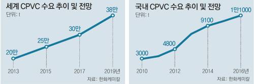 한화케미칼은 기존 수입에만 의존하던 CPVC 제품을 국산으로 대체했는데요. 한화케미칼이 CPVC 기술 개발에 국내 최초로 성공함으로써 국내 최고, 그리고 세계 5대 생산업체가 되었습니다. 특히 CPVC는 범용 제품인 만큼 시장 규모가 해마다 10%가량 성장하고 있어 한화케미칼의 사업 진출이 많은 주목을 받고 있는데요. 여러분도 앞으로 CPVC와 함께 성장하는 한화케미칼을 지켜봐 주길 바랍니다.