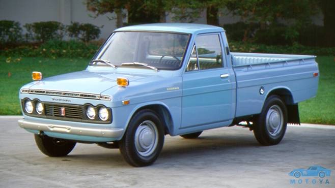 1968년 3월에 공개된 토요타의 초대 하이럭스는 1950년대 생산했던 자사의 보닛형 화물 트럭 스타우트(Stout)와 히노자동차(日野自動車, Hino Motors, 이하 히노)의 보닛형 화물 트럭인 브리스카(Briska)를 통합하는 신모델로 개발되었다. 이 차는 토요타가 기획하고 히노가 개발 및 생산을 맡아 완성, 1968년 3월부터 자국 내수 시장에 판매를 개시했다. 차명인 하이럭스는 영어로 ‘높은’을 의미하는 ‘High’와 고급품을 의미하는 ‘Luxuy’에서 각각 가져왔다.