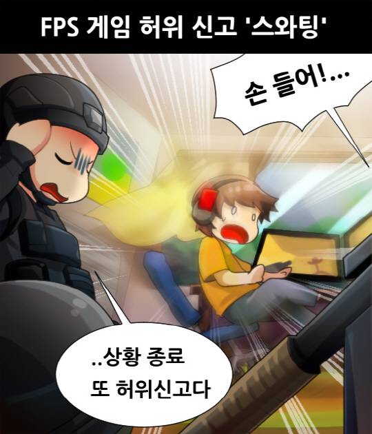 [게임 만평] FPS 게임 허위 신고 '스와팅', 무고한 사망자 발생