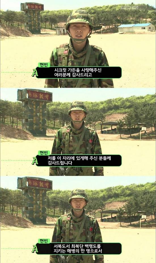배우 현빈은 지난 2011년 47회 백상에서 SBS 드라마 '시크릿 가든'으로 TV 부문 대상의 영광을 안았다. 다시 만나기 힘들 영광이었지만, 아쉽게도 당시 그는 백령도에서 서해 백령도 해병대 6여사단에서 군 복무 중이었다. 백상 역사상 최초로 영상을 통해 수상 소감을 밝히는 진풍경이 펼쳐졌다. 군인답게 각 잡힌 경례를 한 현빈은 소감 영상을 통해 "'시크릿 가든'을 사랑해주신 여러분께 감사드리고, 나를 이 자리에 있게해 주신 분들께 감사드린다. 서북도서 최북단 백령도를 지키는 해병의 한 명으로서 서북도서 사수와 제 임무에 충실히 임하겠다"고 말했다.