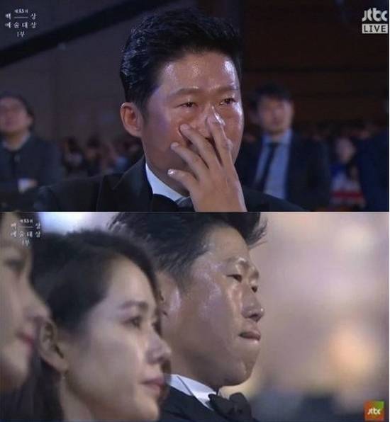 지난해 53회 백상 최고의 순간은 다름 아닌 1부 마지막 등장한 축하 무대다. 아직 이름을 알리지 못한 33인의 배우들이 가수 서영은의 곡 '꿈을 꾼다'를 부르자 장내는 순식간에 눈물 바다가 됐다. 생방송 중계 카메라는 눈물을 흘리는 단상 위 스타들의 모습을 비쳤는데, 특히 배우 유해진의 눈물이 큰 화제를 모았다. 유해진은 이날 최고의 배우들만 오를 수 있는 최우수연기상 후보로 백상에 참석했다. 그런 그가 무명 배우들의 무대를 보면서 참지 못해 얼굴을 가리며 눈물을 흘렸다. 유해진 또한 오랜 무명 생활을 버티고 지금의 자리에 올라 더욱 감격에 찼을 터. 꿈을 꾼다는 무명 배우들과 꿈을 꿨던 스타 배우가 주고 받은 감동은 TV를 넘어 모든 관객들의 마음을 움직였다.