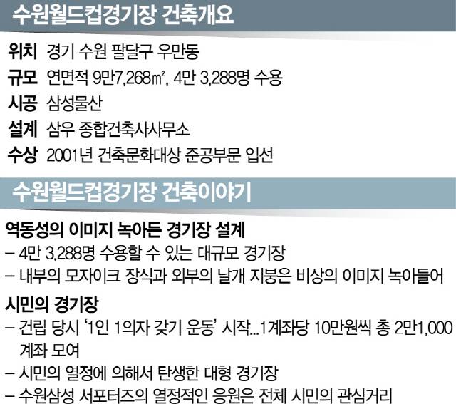 [건축과 도시] 수원월드컵경기장, 날개처럼 펼쳐진 지붕..'한국축구 비상' 염원하다