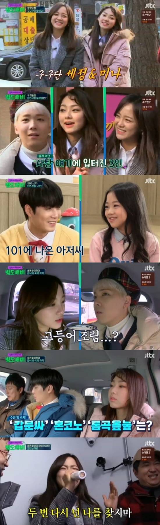 14일 방송된 JTBC '밤도깨비'에서는 겨울방학을 맞아 10대들의 핫플레이스가 위치한 성남시를 찾았다. 그룹 구구단 세정·미나가 게스트로 출연했다.