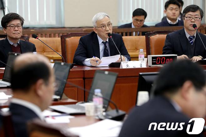 (서울=뉴스1) 박정호 기자 = 오윤성 순천향대 경찰행정학과 교수가 7일 오전 서울 여의도 국회 국방위원회의 군 사망사고 진상규명에 관한 특별법안에 대한 공청회에서 의원들의 질의에 답하고 있다. 2018.2.8/뉴스1