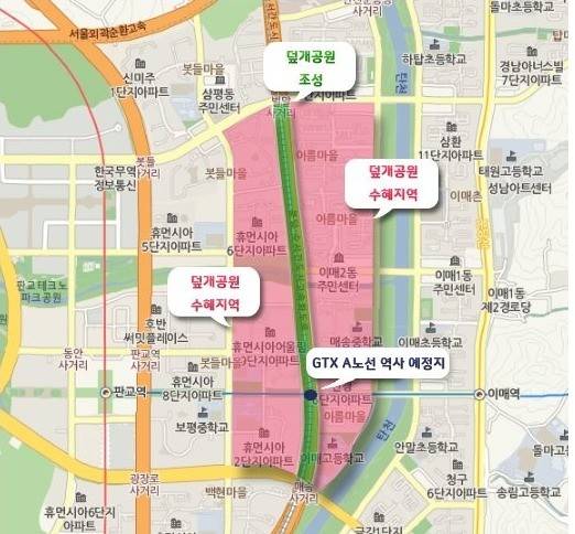 덮개공원은 향후 도로 소음과 매연을 줄여줄 전망이다. 그 위에 들어서는 대규모 녹지공간은 인근 주민들의 휴식처가 될 것으로 예상된다. 도로로 끊어진 판교와 분당을 이어 서로 상대지역 지하철(신분당선 판교역·분당선 이매역)을 걸어서 이용하는 게 가능해졌다. 현재 아름마을 주민이 판교역까지 걸어가려면 빙돌아 벌말사거리나 매송사거리를 지나야 한다. 이매동 P공인 대표는 “덮개공원이 조성되면 주변 단지는 이매역, 판교역, GTX 역을 걸어다닐 수 있는 트리플 역세권 단지로 거듭난다”고 말했다.