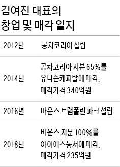 아들을 둔 평범한 가정주부로 밀크티 프랜차이즈 공차코리아를 설립한 뒤 340억원에 매각해 화제를 모은 김여진 (주)바운스 대표(36)가 자신의 두 번째 창업 회사를 팔아 다시 한번 대박을 터뜨렸다.