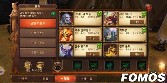 그 뿐만 아니라 필드에서 자동전투로 특정 몬스터를 사냥하는 소위 잠수사냥에 대한 보상으로는 물품과 교환할 수 있는 명성이 주어지며 메인, 서브 퀘스트를 통한 몬스터 사냥에 대해서만 레벨업에 필요한 경험치 보상이 주어진다.