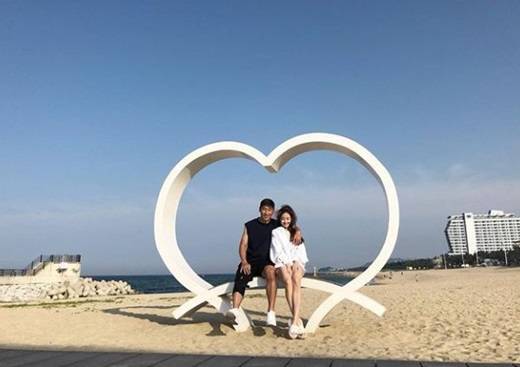 이근호는 5일 자신의 인스타그램에 "흑과백 #여보없음 아무것도 못해요#환자와 간병인#데이트#부부스타그램#알라뷰"이라는 문구와 함께 바닷가에서 찍은 사진을 게재했다.