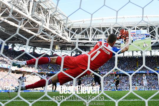 공격에 핀보가손이 있었다면, 수비에는 육탄 방어를 펼친 수비진이 있었다. 쉽게 부서지지 않는 얼음 장벽이었다. 특히 후반 17분 메시의 페널티킥을 막는 슈퍼 세이브를 선보인 할도르손 골키퍼의 활약이 빛났다. 메시가 노린 왼쪽 방향을 정확히 읽은 할도르손은 두 손을 모아 길게 뻗으며 다이빙해 메시의 슛을 튕겨냈다. 후반 41분에도 날카로운 슛을 쳐내는 슈퍼 세이브를 선보이며 다시 한 번 팀을 위기에서 끌어냈다.