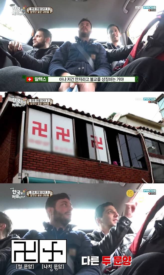 알렉스는 "나도 처음 한국에 왔을 때 놀랐다. 유럽에서는 나치 마크를 보여주는건 불법이다. 나도 처음 왔을 때 '이거 뭐지?' 하고 놀랐다. 불교 마크인 줄 몰랐다. 그래서 설명해줘야 했다"고 말했다.