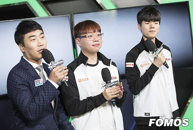 20일 오후 강남 서초동 넥슨 아레나에서 열린 리그오브레전드 챔피언스(롤챔스) 1라운드 KSV와 kt 롤스터의 경기서 kt가 KSV를 2대0으로 제압했다. 경기 후 '폰' 허원석과 '데프트' 김혁규가 인터뷰를 준비하고 있다.