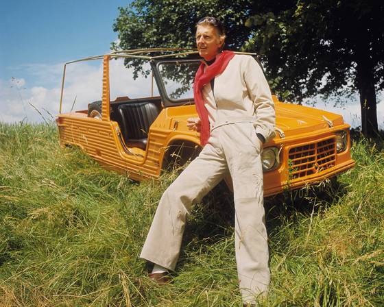 1969년 촬영한 패션화보의 한 장면. 자신이 디자인한 의상을 입은 지방시가 들판에 세워둔 승용차 시트로앵에 기댄 채 포즈를 취했다.