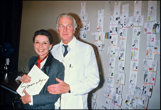 1986년 여름 컬렉션 발표 후 기자들을 향해 인사하는 지방시와 오드리 헵번. 40년 지기 친구이자 진정한 소울 메이트였던 두 사람은 한 때 약혼까지 할 정도로 사랑하는 사이였지만 결국 결혼이 아닌 우정을 선택해 1993년 그녀가 죽을 때까지 디자이너와 뮤즈로 평생을 함께 했다. 헵번은 “지방시의 옷을 입으면 나도 모르게 그냥 기분이 좋아진다” 라고 했다. 지방시 역시 “패션에서 그녀와 나 사이에는 절대적이고 견고한 신뢰가 존재한다”고 말하며 오드리 헵번에 대한 굳은 믿음을 표현하곤 했다.