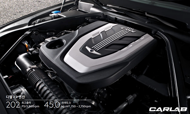G80 디젤에 탑재된 심장은 3,800rpm에서 최고출력 202마력(PS), 1,750~2,750rpm에서 최대토크 45.0kg.m을 내는 2.2리터 e-VGT 엔진으로 8단 자동변속기와 궁합을 맞춘다.