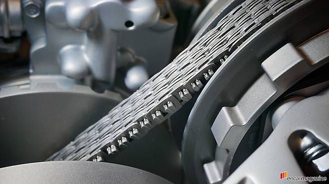 CVT는 벨트와 풀리를 활용해 낮은 변속단에서부터 높은 변속단까지 연속적으로 대응한다. CVT는 무엇보다 변속충격이 없다는 점과 연료소비효율이 향상된다는 장점이 있다. 다만 차속이 올라감에 따라 변속되는 주행의 재미는 다소 떨어진다는 약점이 있다.