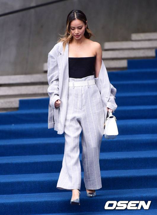 배우 제이미정이 PUSHBUTTON 패션쇼에 참석해 블루카펫을 밟고 있다. /pjmpp@osen.co.kr