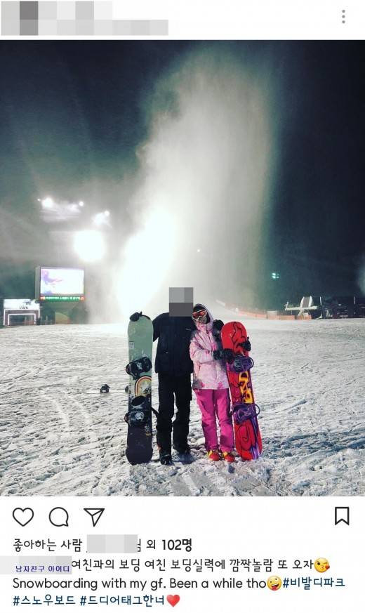 당시 두 사람은 스키장에 놀러가기도 했다. 김나희의 남자친구는 “여친과의 보딩. 여친 보딩 실력에 깜짝 놀람. 또 오자”는 글과 함께 커플 사진을 덧붙였다.