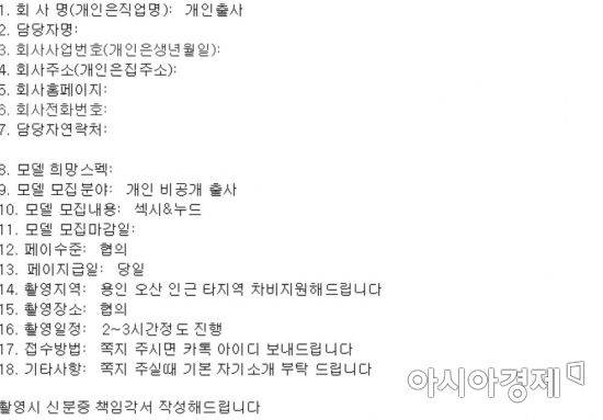 문제는 비공개 출사 현장 중 일부가 양씨와 이씨의 주장처럼 사전 합의 없이 반강제적으로 진행된다는 점이다. 이들은 당초 일반적인 ‘피팅모델’ 아르바이트로 인지하고 계약서를 작성했다가 피해를 봤다고 주장하고 있다.