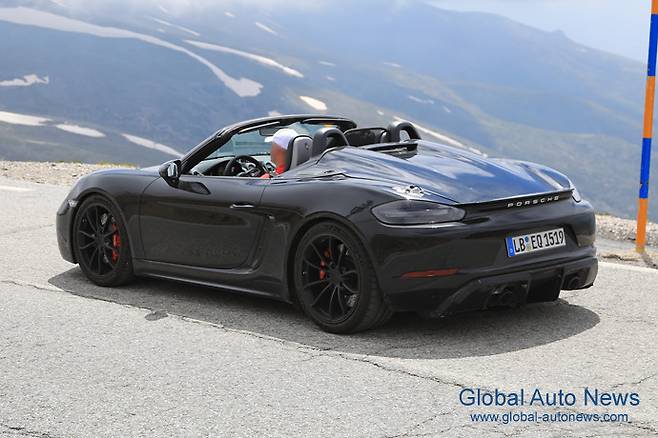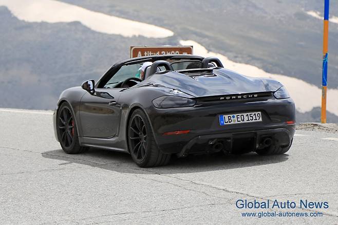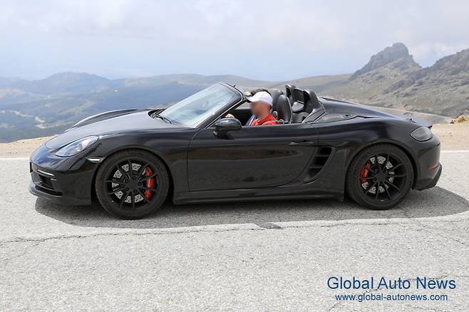 얼마 후면 등장하게 될 포르쉐 718 박스터 스파이더가 이번에 좀 더 모양을 갖춘 채로 포착됐다. 이번에 포착된 것은 양산형에 가장 가까운 모습으로, 후에 등장할 모델도 여기에서 크게 벗어나지는 않을 것으로 추정된다. 전면에는 718 박스터 GTS에서 이식받은 프론트 범퍼를 적용하고 있고, 붉은 색 캘리퍼를 지닌 고성능 브레이크와 경량 휠이 적용된 것을 볼 수 있다.