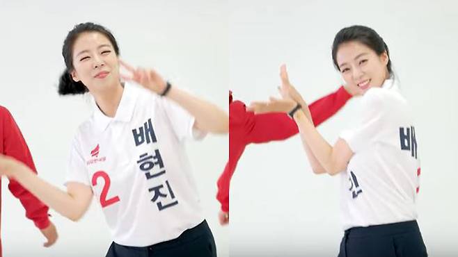 영상 속 배 후보는 개사 된 노래에 맞춰 밝은 미소와 함께 춤을 춘다. 자유한국당의 기호 2번을 강조하는 'V자' 율동이 눈에 띈다.