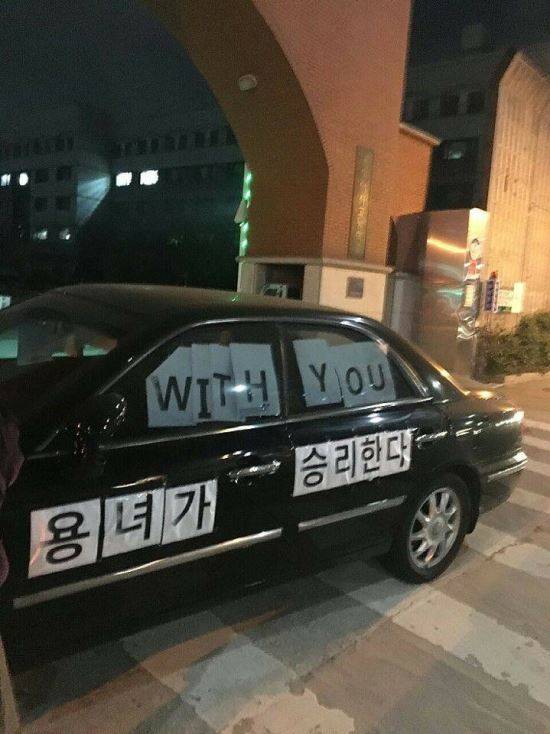 서울 노원구의 한 여자고등학교 창문에 '위드유(#Withyou)' 'We can do anything(우리는 무엇이든 할 수 있어)'이라는 글자가 붙었다.