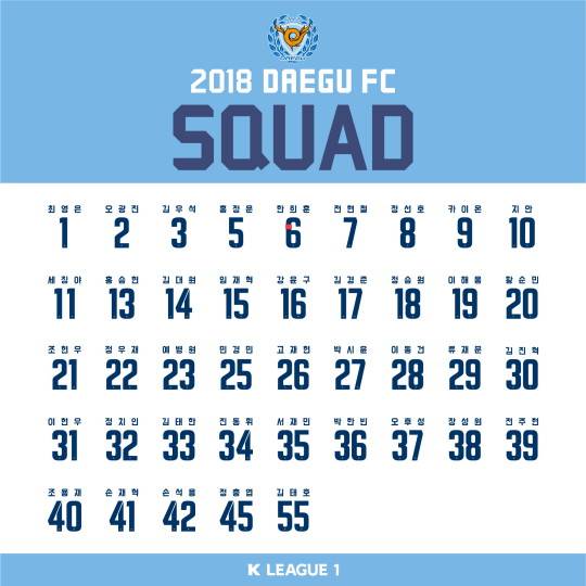 이외에도 대구 선수단 모두가 등번호 배정을 마쳤다. 전지훈련에서 구슬땀을 흘리고 있는 대구는 2018시즌 K리그1(클래식)에서 상위 스플릿 진출을 목표로 삼고 있다.