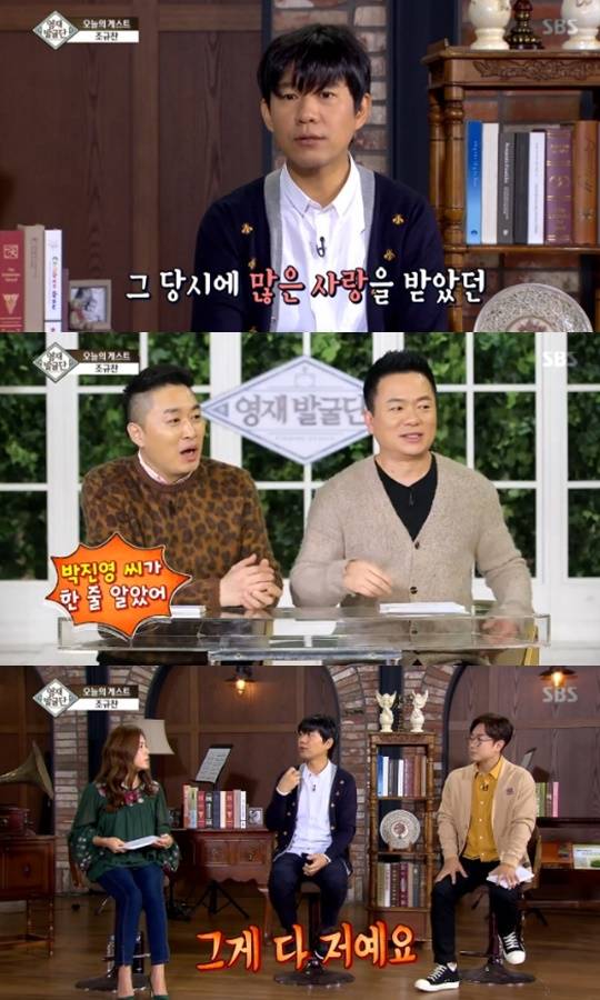 조규찬의 설명에 MC들은 "'그녀는 예뻤다'에서 어떤 부분을 불렀냐"며 깜짝 놀랐고, 조규찬은 "전주랑 후주에 애드리브가 다 저다"고 말했다. 이에 MC들은 "박진영 씨가 한 줄 알았다"고 말했다.(사진=SBS '영재발굴단' 캡처)