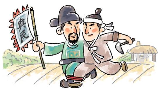 세종을 이야기할 때 자주 사용하는 낱말이다. 세 낱말은 어떤 차이가 있으며, 세종은 어떤 것을 더 중시했을까? ‘세종실록’의 용례를 살펴보면 ‘위민’은 “의창(義倉·군현 단위에 설치한 구호기관) 설치한 것은 백성을 위한 것”이라는 말처럼 어떤 제도나 관직을 설치한 취지를 가리킨다. ‘애민’은 왕이나 수령 등이 병든 노인이나 노비 등 사회적 약자의 입장에 서서 결정을 내리는 것으로, 신중한 형벌이나 구휼 잘하기 등 구체적인 행동을 수반하는 공직자의 요건(職)이다. 이에 비해 ‘여민’은 나랏일을 추진하는 과정에서 백성을 동반자로 끌어들이는 것을 말할 때 사용되곤 했다.
