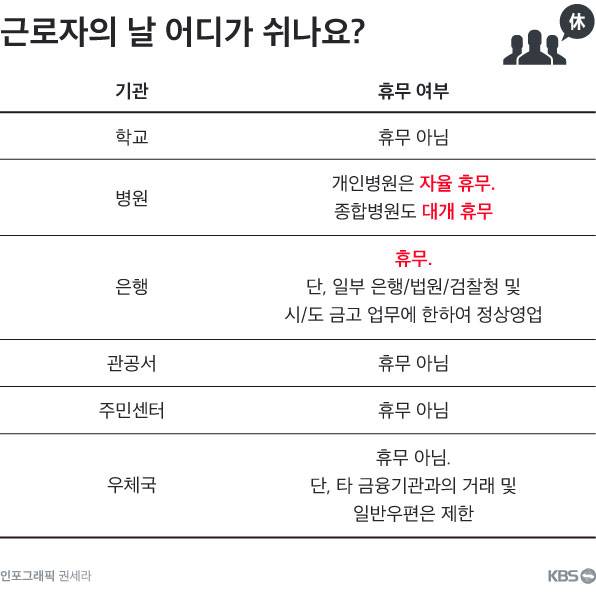 - '근로자의 날' 5월 1일, 은행과 우체국은 문열까?